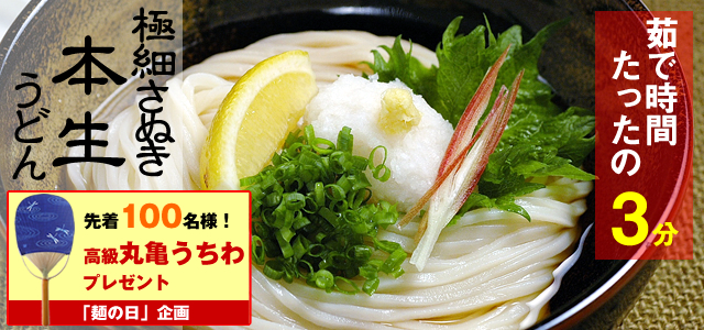 ゆで時間は生うどんで3分間、半生で5分間だ。
